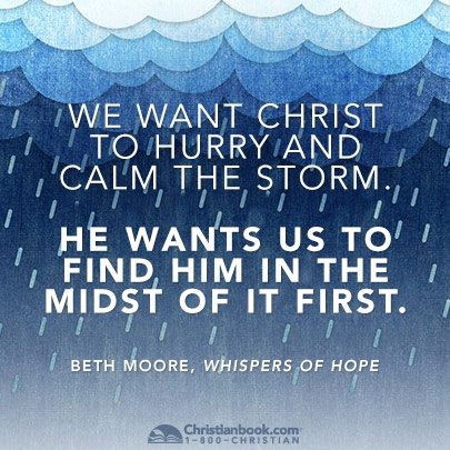 What storms are raging around you today, friend? Sickness, financial loss, temptation, uncertainty, tornado, flood are but a few. Are you arguing with the Lord about why He would allow you to live through such a time? Instead, ask what you can discover of His amazing grace! And, please know this – you are a normal Christian if the tempest has temporarily caused you to lose your assurance, to be unable to sense the Presence of the Spirit. But, you are not helpless! Force feed the Word to your mind and heart. Seize passages of promise and bring them to the forefront of your thoughts. The Word speaks often about ‘walking through’ storms and God’s sustaining Presence with us. ” But now, this is what the LORD says— he who created you, O Jacob, he who formed you, O Israel: “Fear not, for I have redeemed you; I have summoned you by name; you are mine. When you pass through the waters, I will be with you; and when you pass through the rivers, they will not sweep over you. When you walk through the fire, you will not be burned; the flames will not set you ablaze. For I am the LORD, your God, the Holy One of Israel, your Savior.” (Isaiah 43:1-3, NIV)