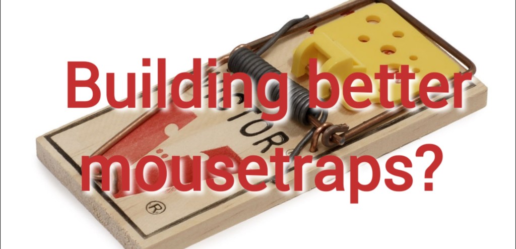 Somebody said “if you build a better mousetrap, the world will beat a path to your door.” Emerson was a bit more eloquent in phrasing the same idea. “If a man has good corn or wood, or boards, or pigs, to sell, or can make better chairs or knives, crucibles or church organs, than anybody else, you will find a broad hard-beaten road to his house, though it be in the woods.” (Ralph Waldo Emerson)